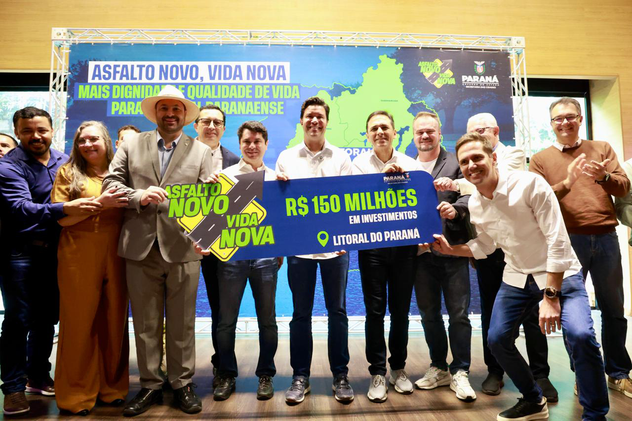 O Governo do Paraná, por meio da Secretaria das Cidades (Secid), anunciou nesta sexta-feira, (12), em Paranaguá, um pacote de investimentos de R$ 150 milhões para obras de pavimentação nos sete municípios do Litoral. O anúncio foi feito pelo secretário estadual das Cidades, Guto Silva, em evento na sede do Instituto Superior do Litoral do Paraná (Isulpar), com a presença de prefeitos, deputados estaduais e representantes da sociedade civil.